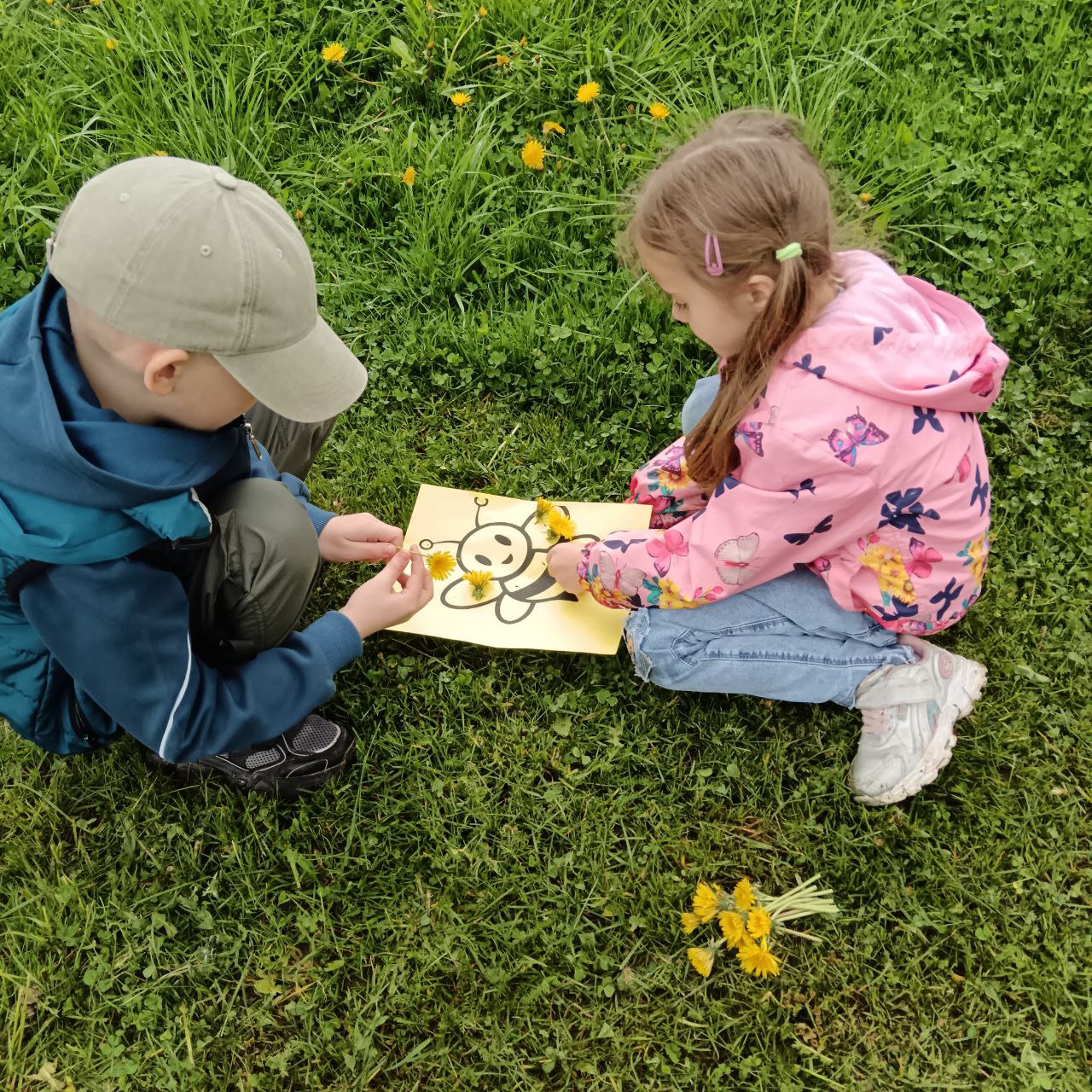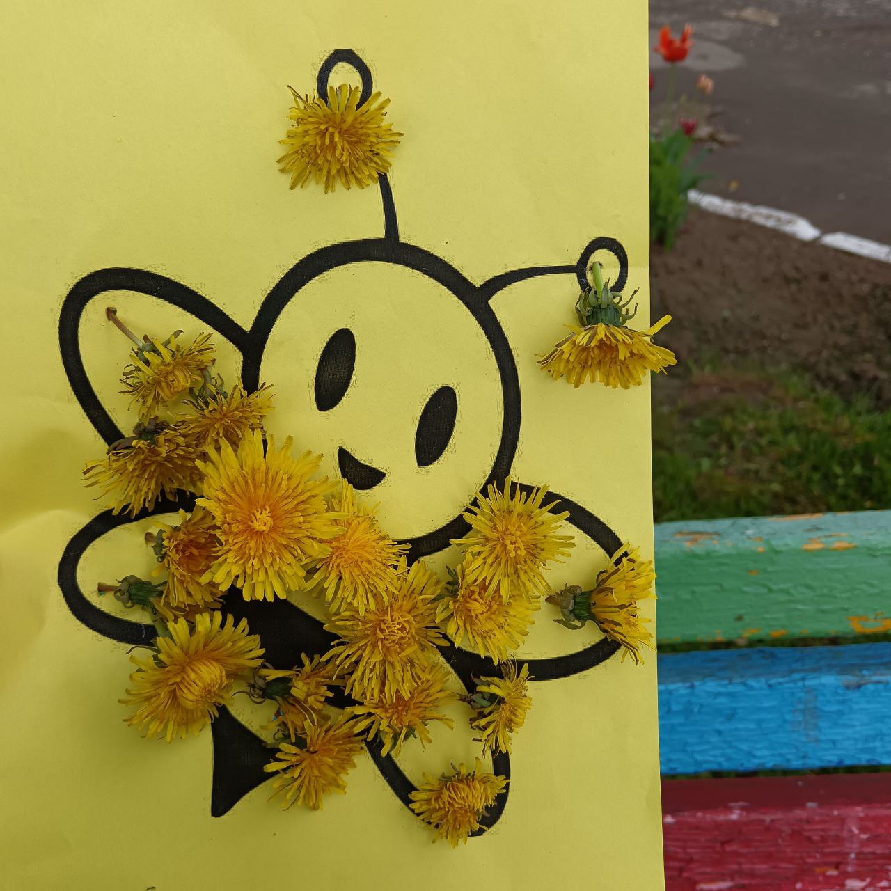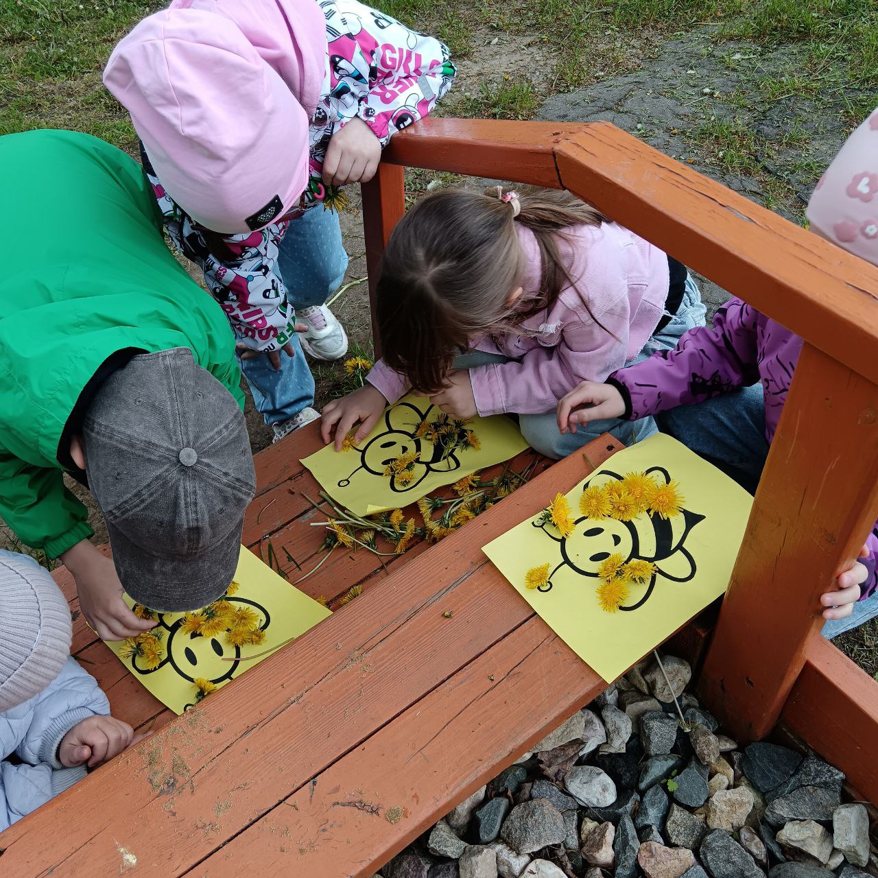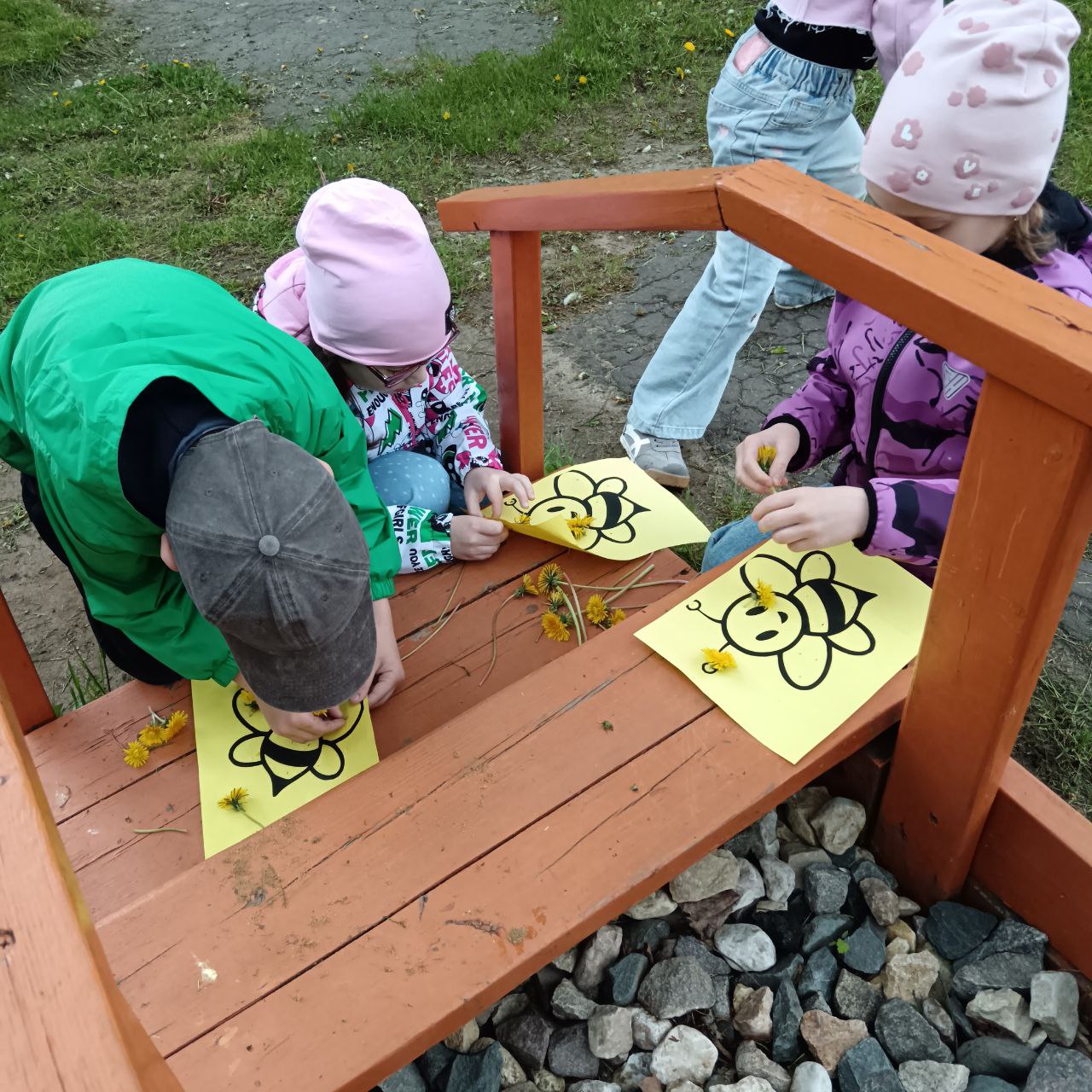 Посмотрите, какие очаровательные пчёлки из одуванчиков создали ребята! Настоящие солнечные шедевры, наполненные светом и радостью детства!